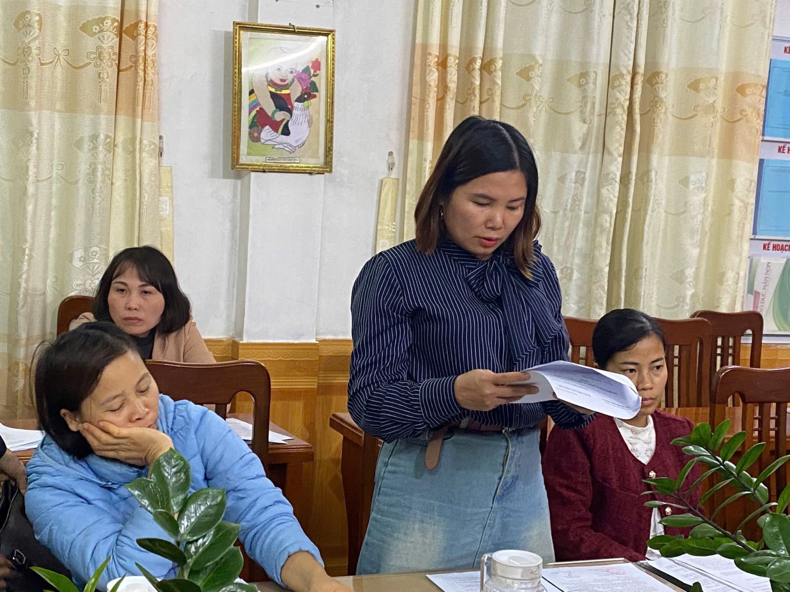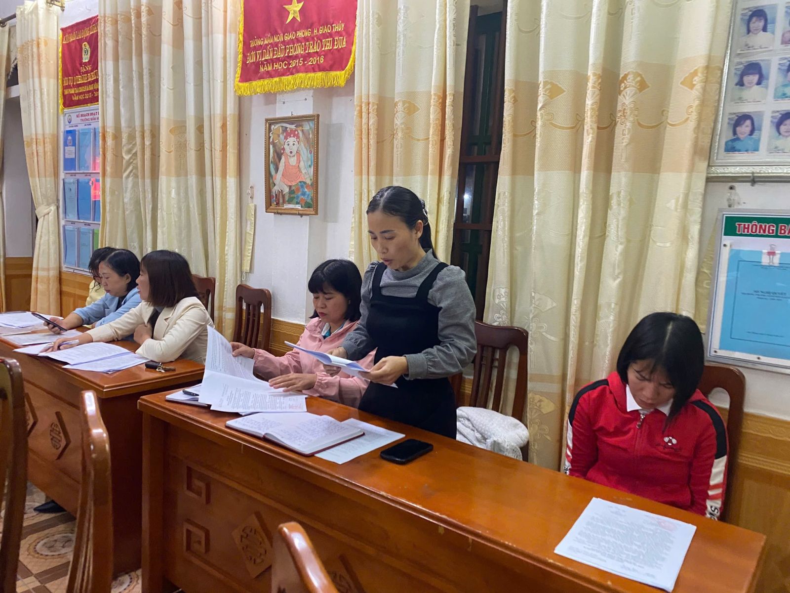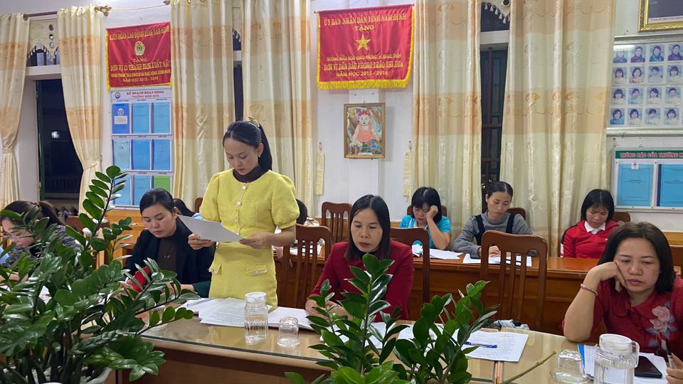 Tại hội nghị, đồng chí đã thay mặt Chi bộ trình bày Báo cáo kiểm điểm tập thể Chi bộ Mầm non Giao Phong năm 2025. Các đảng viên lần lượt thực hiện tự kiểm điểm nghiêm túc, thẳng thắn, nêu rõ ưu điểm, hạn chế và đề ra phương hướng khắc phục trong thời gian tới.