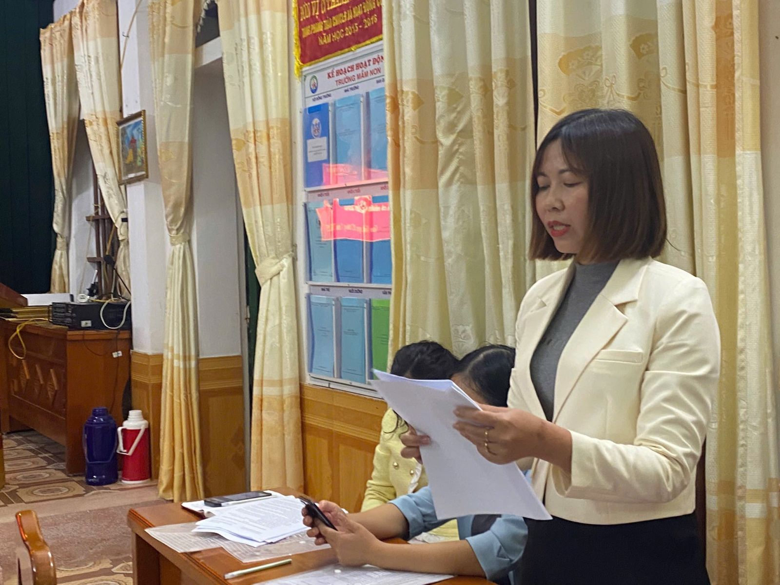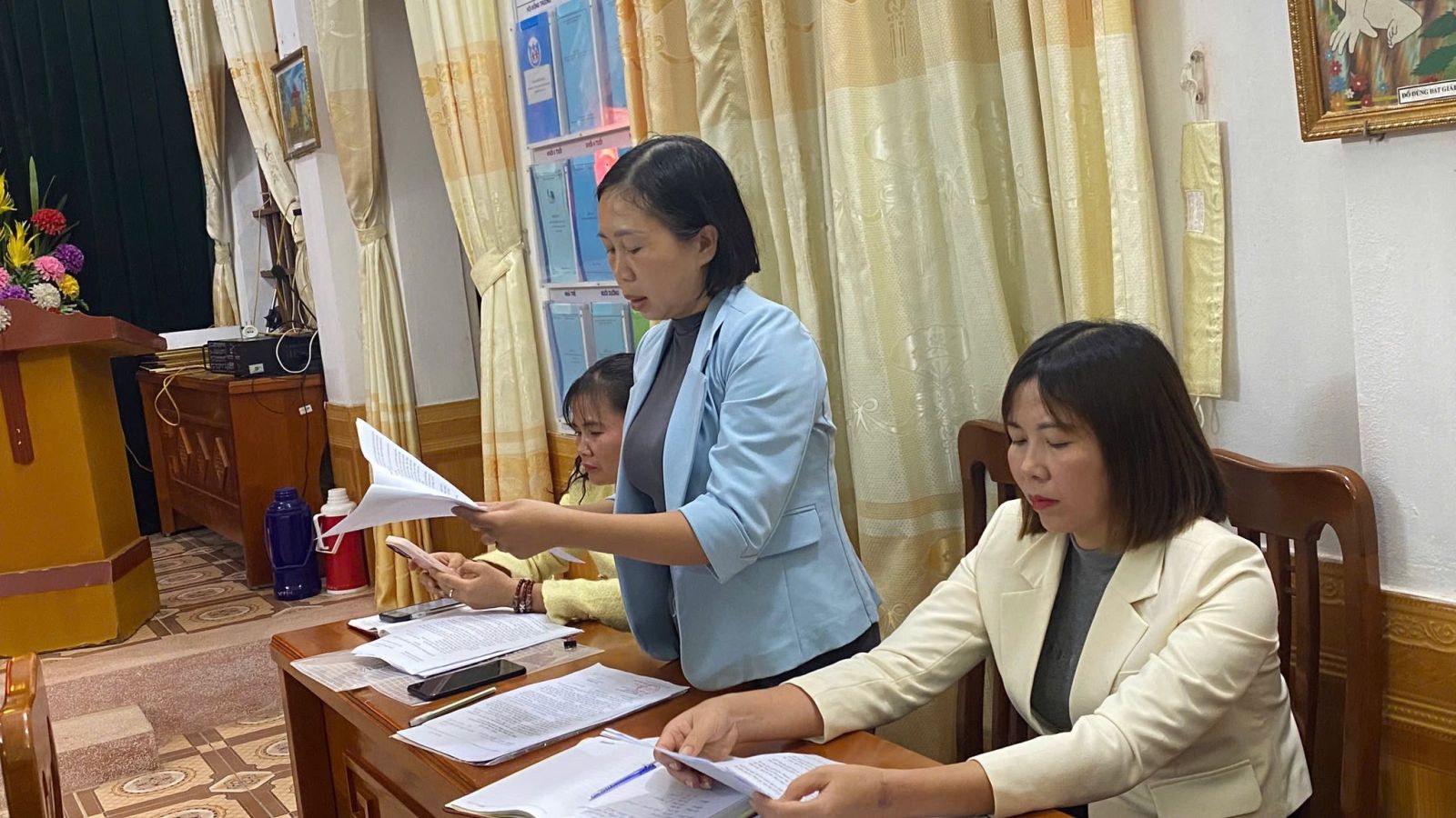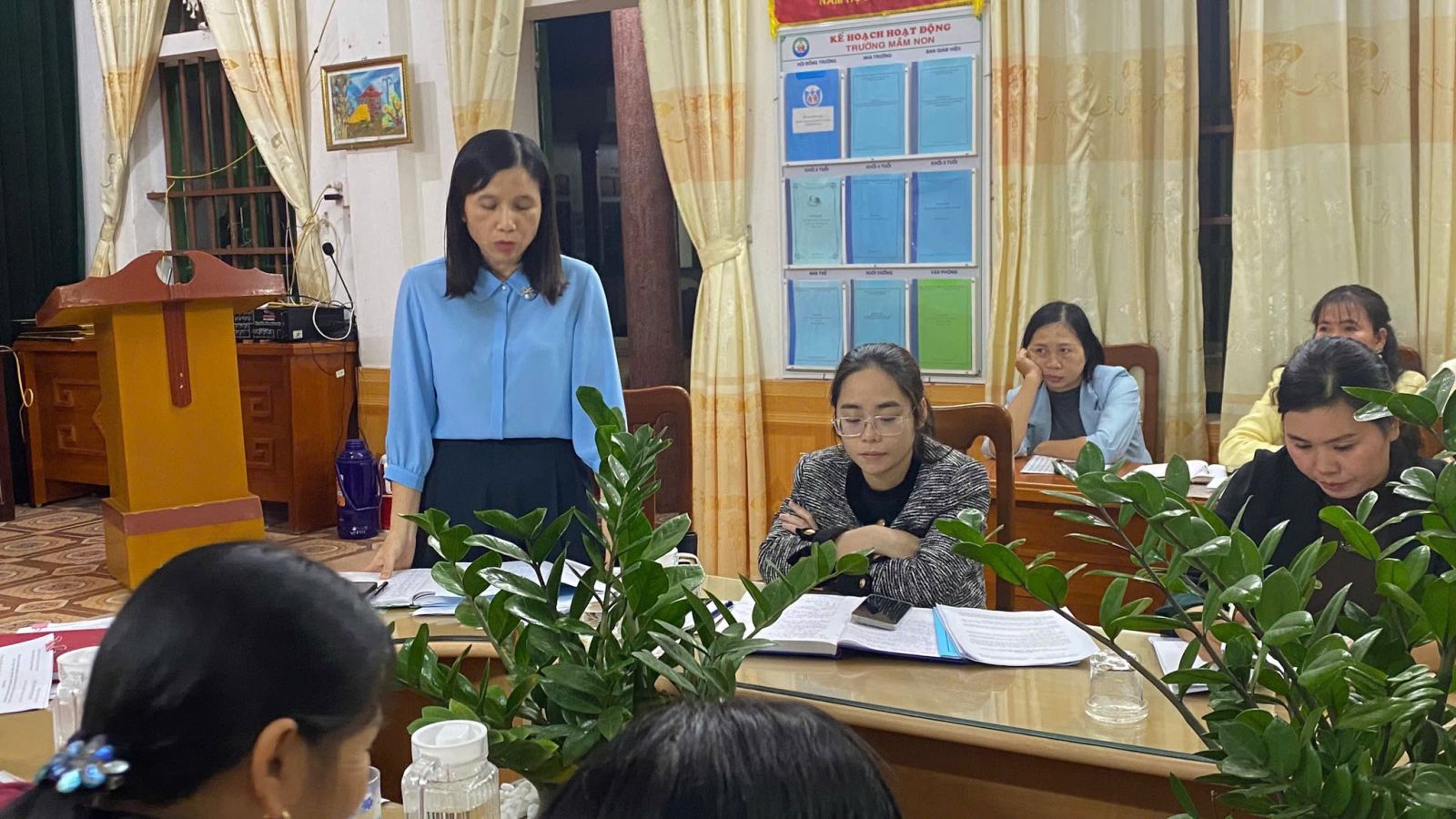 Tại hội nghị, đồng chí đã thay mặt Chi bộ trình bày Báo cáo kiểm điểm tập thể Chi bộ Mầm non Giao Phong năm 2025. Các đảng viên lần lượt thực hiện tự kiểm điểm nghiêm túc, thẳng thắn, nêu rõ ưu điểm, hạn chế và đề ra phương hướng khắc phục trong thời gian tới.