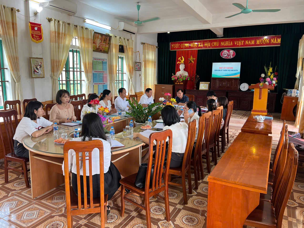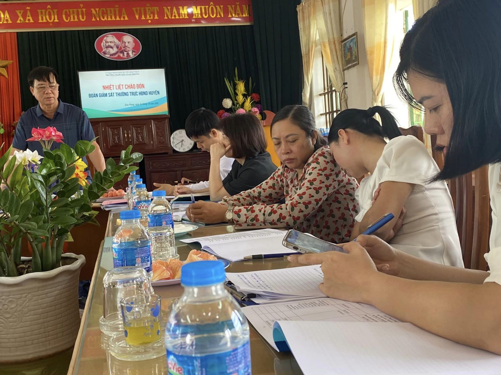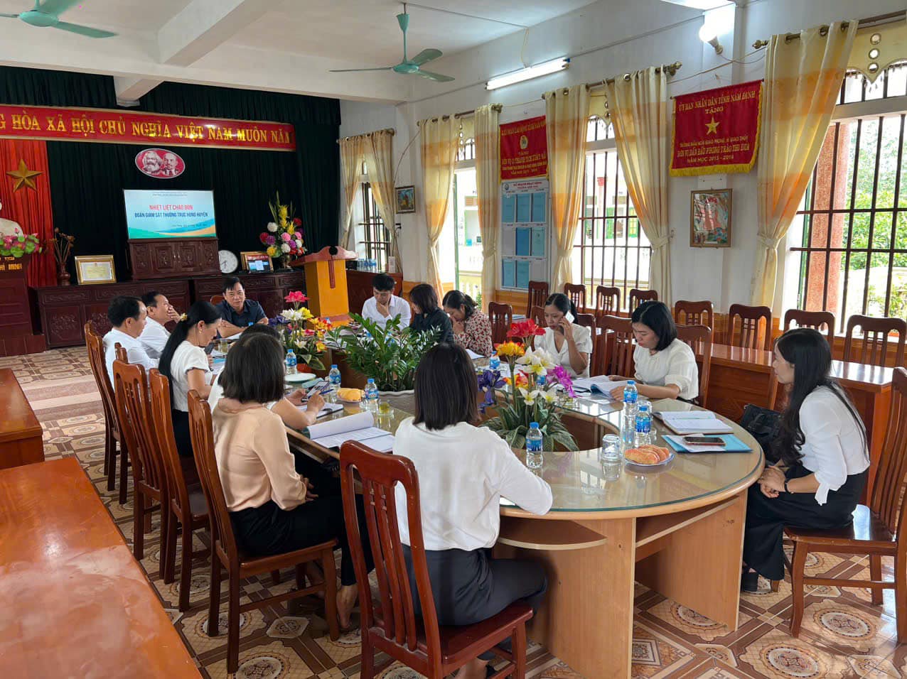 Đoàn giám sát Thường trực Hội đồng nhân dân Huyện Giao Thủy đến làm việc về công tác thu chi ngoài học phí tại trường