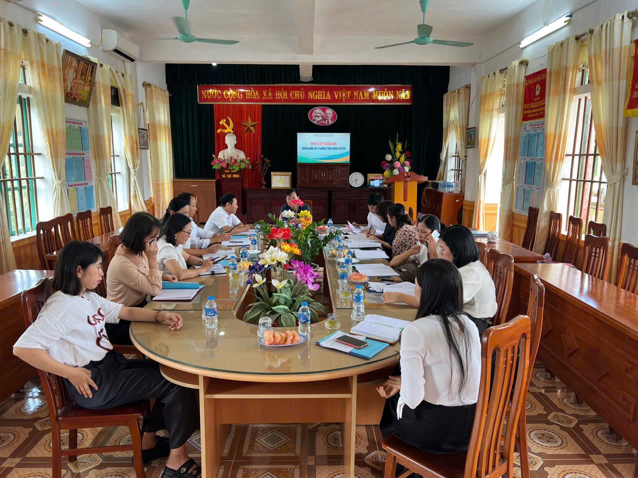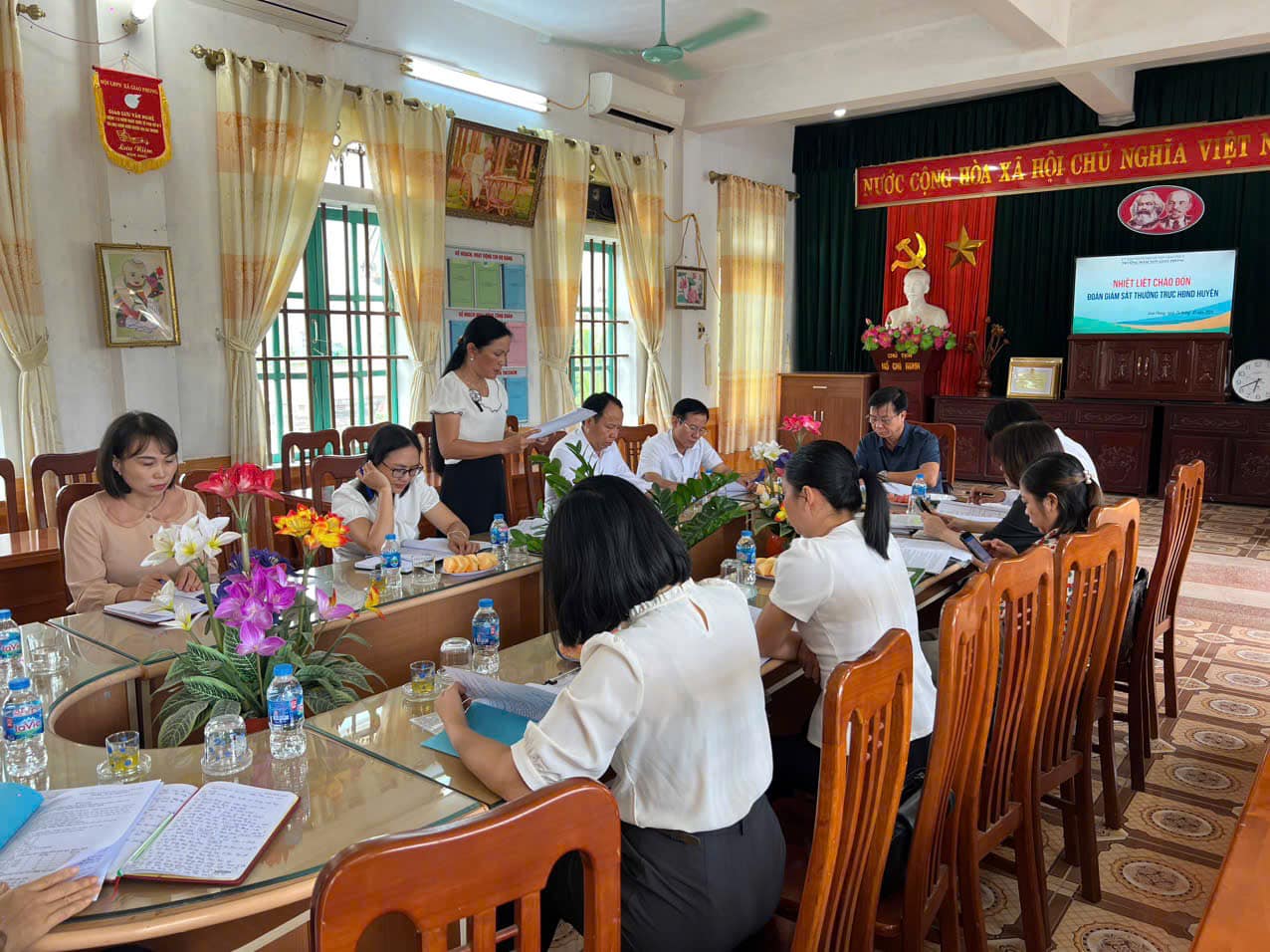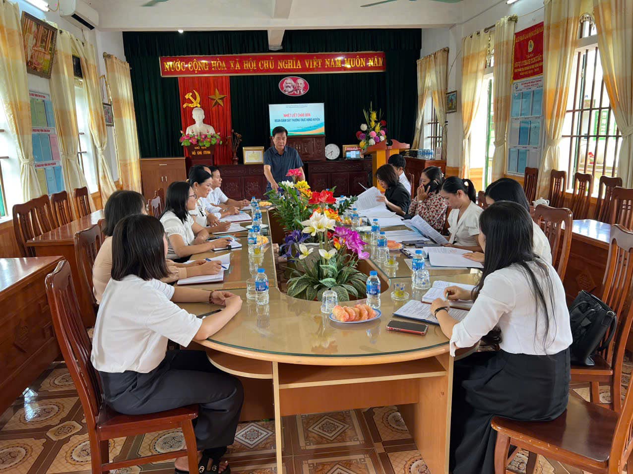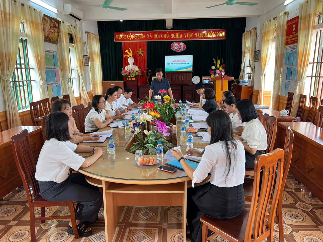 Đoàn giám sát Thường trực Hội đồng nhân dân Huyện Giao Thủy đến làm việc về công tác thu chi ngoài học phí tại trường