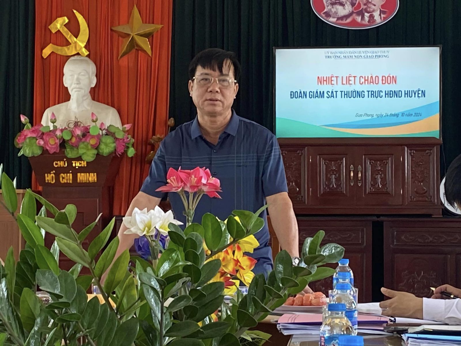 Đoàn giám sát Thường trực Hội đồng nhân dân Huyện Giao Thủy đến làm việc về công tác thu chi ngoài học phí tại trườngNgày 24 /10/2024, Trường Mầm non Giao Phong rất vinh dự được đón tiếp Đoàn giám sát Thường trực Hội đồng nhân dân Huyện Giao Thủy đến làm việc về công tác thu chi ngoài học phí tại trường. Trưởng đoàn là ông Tô Xuân Hiển – Thường vụ Huyện ủy – Phó Chủ tịch Hội đồng nhân dân Huyện , cùng các đại biểu trong đoàn và các vị đại biểu đại diện Thường trực Đảng ủy, Hội đồng nhân dân và Ủy ban nhân dân xã Giao Phong.
