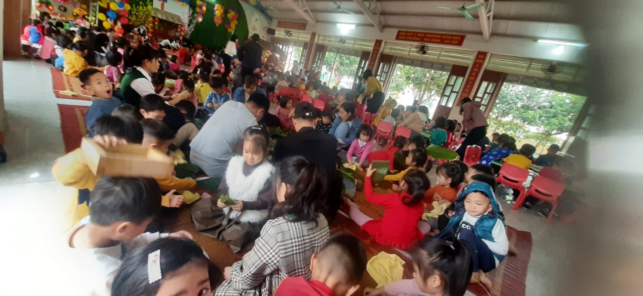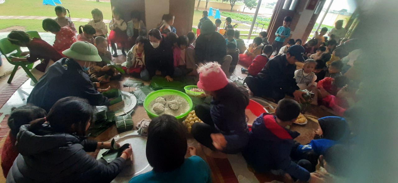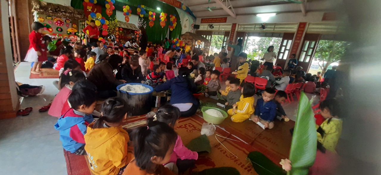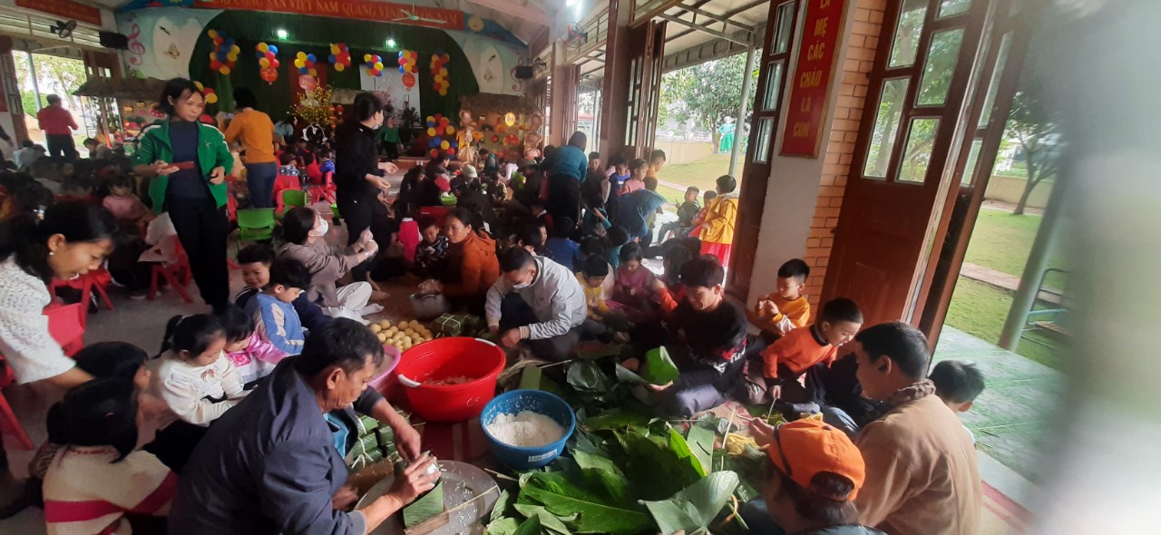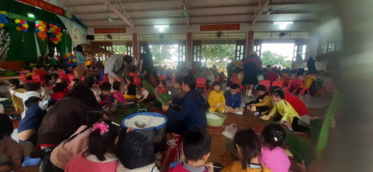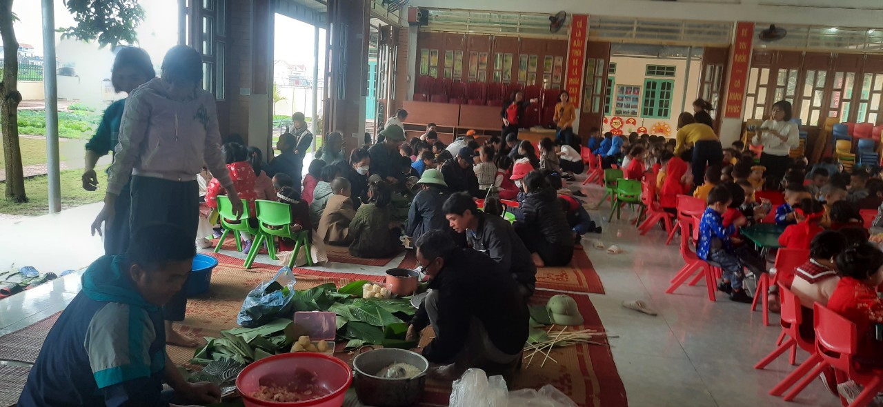 Hoạt động trải nghiệm “Gói bánh chưng ngày tết Nguyên Đán” của các bé trường Mầm non Giao Phong