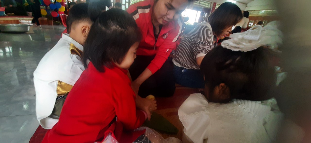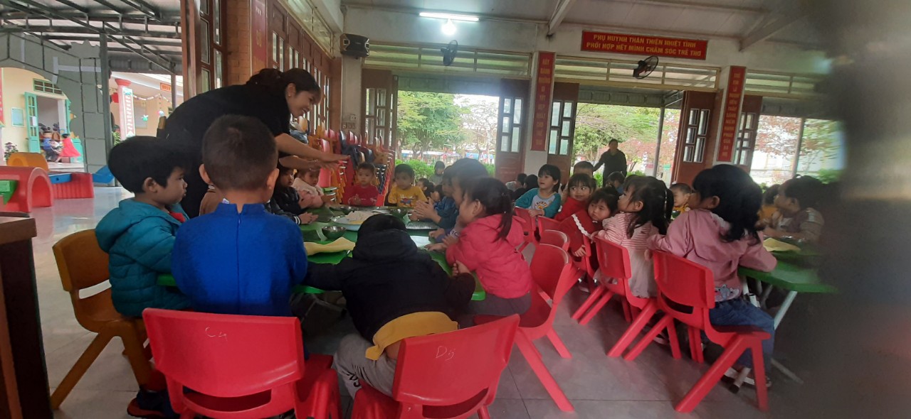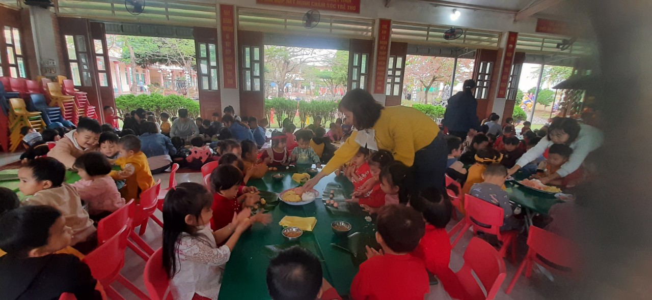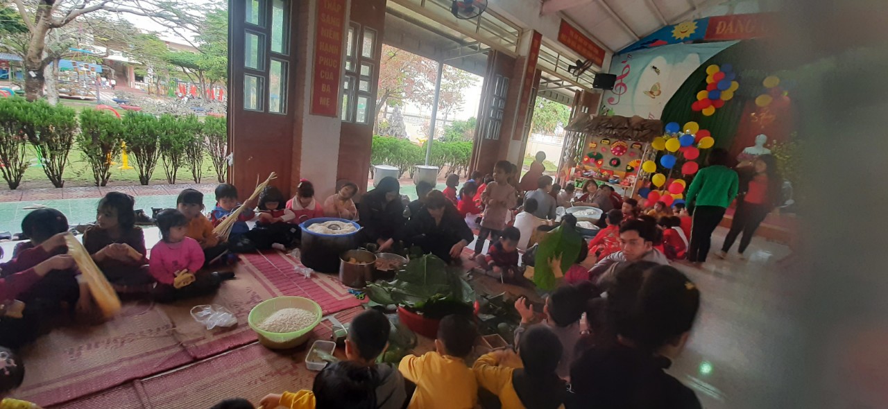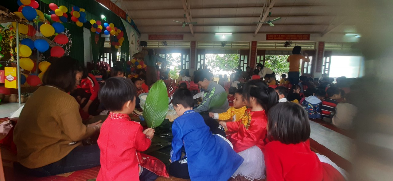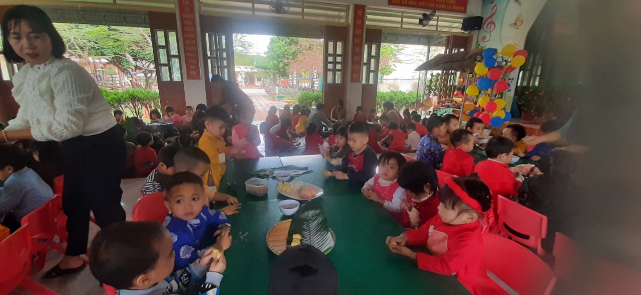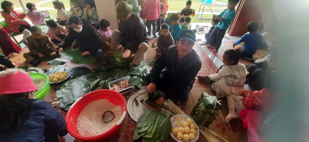 Hoạt động trải nghiệm “Gói bánh chưng ngày tết Nguyên Đán” của các bé trường Mầm non Giao Phong
