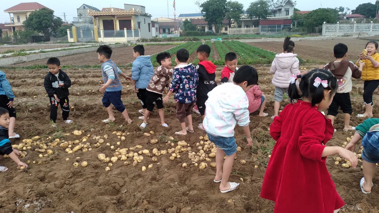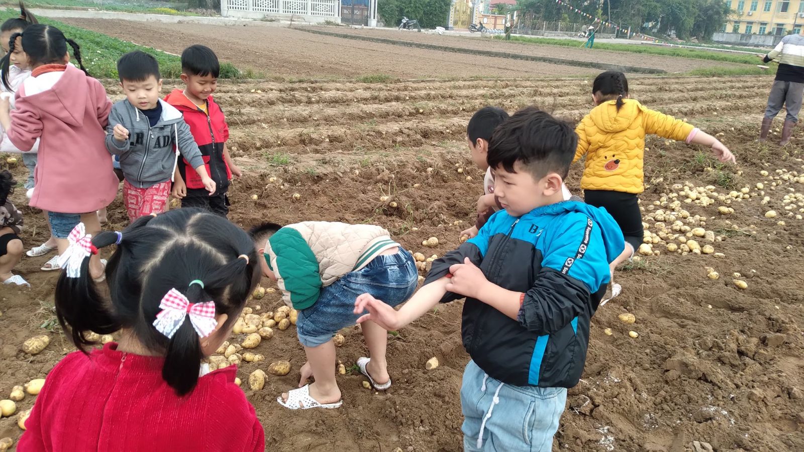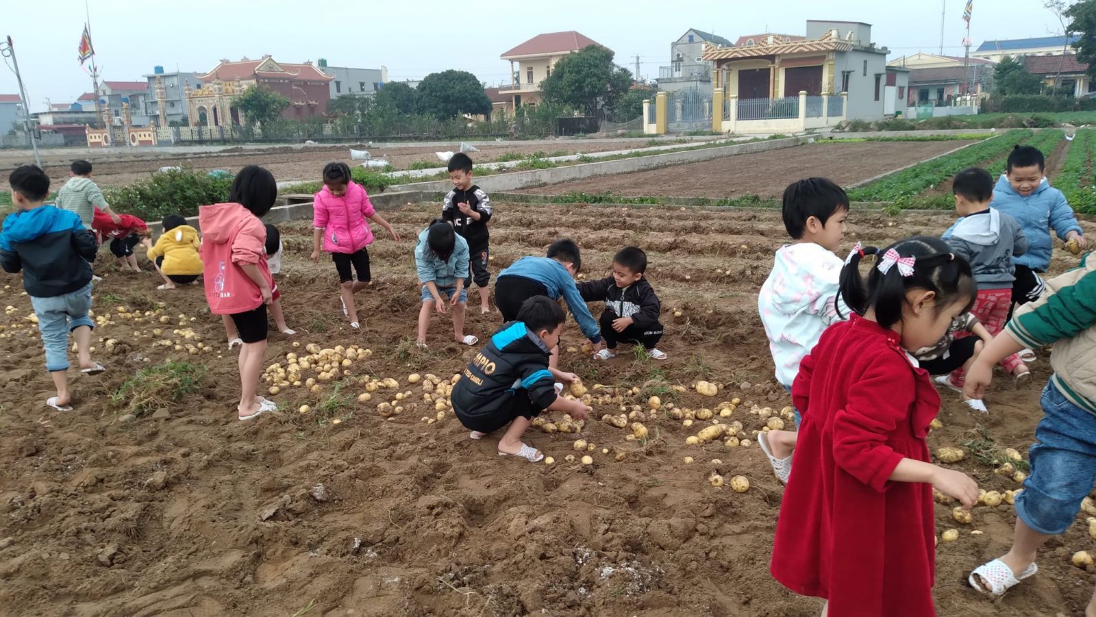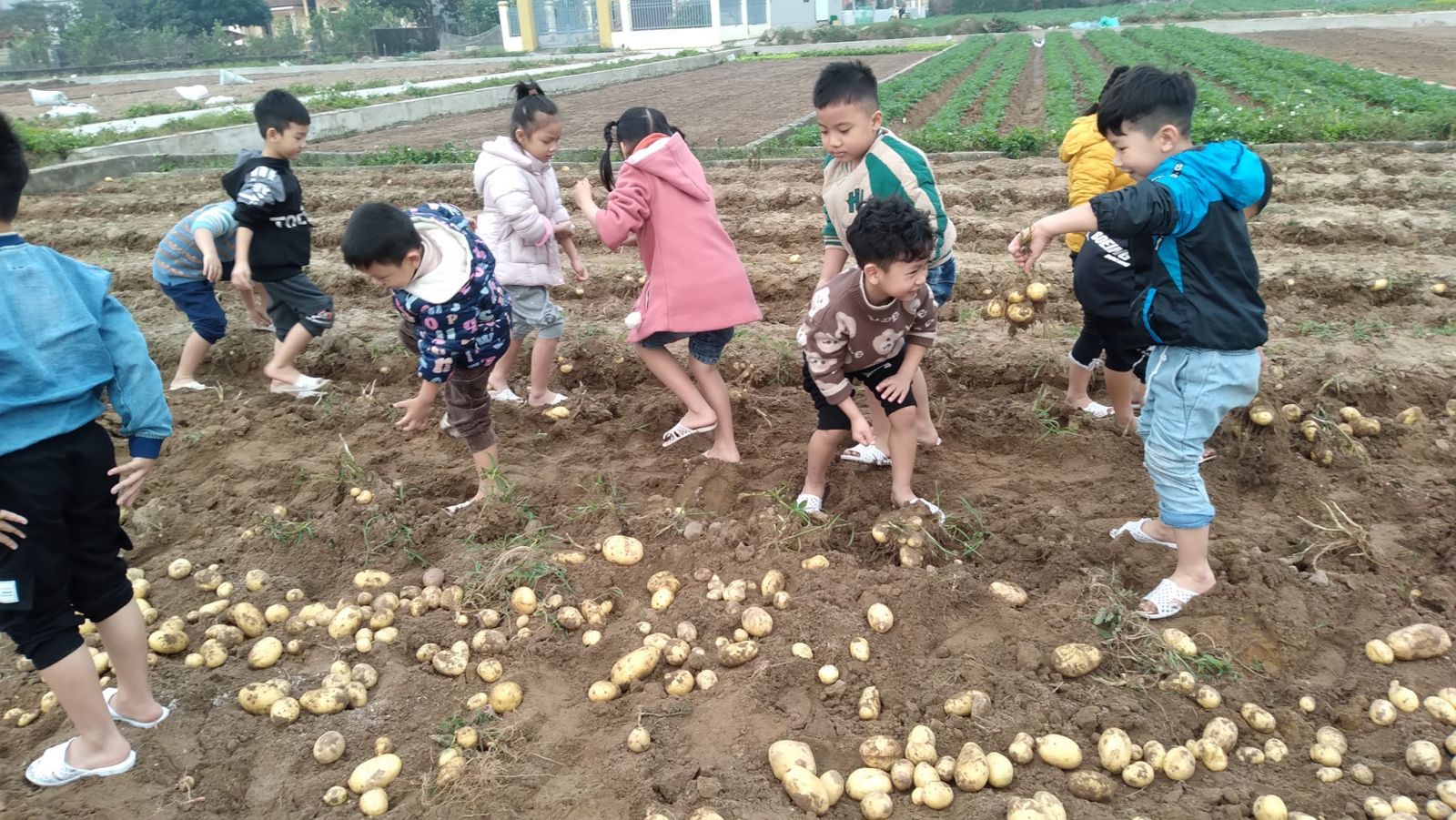Dưới đây là một số hình ảnh trải nghiệm thu hoạch khoai tây giúp các bác nông dân của các con trường mầm non Giao Phong