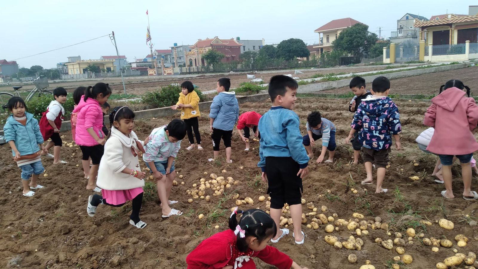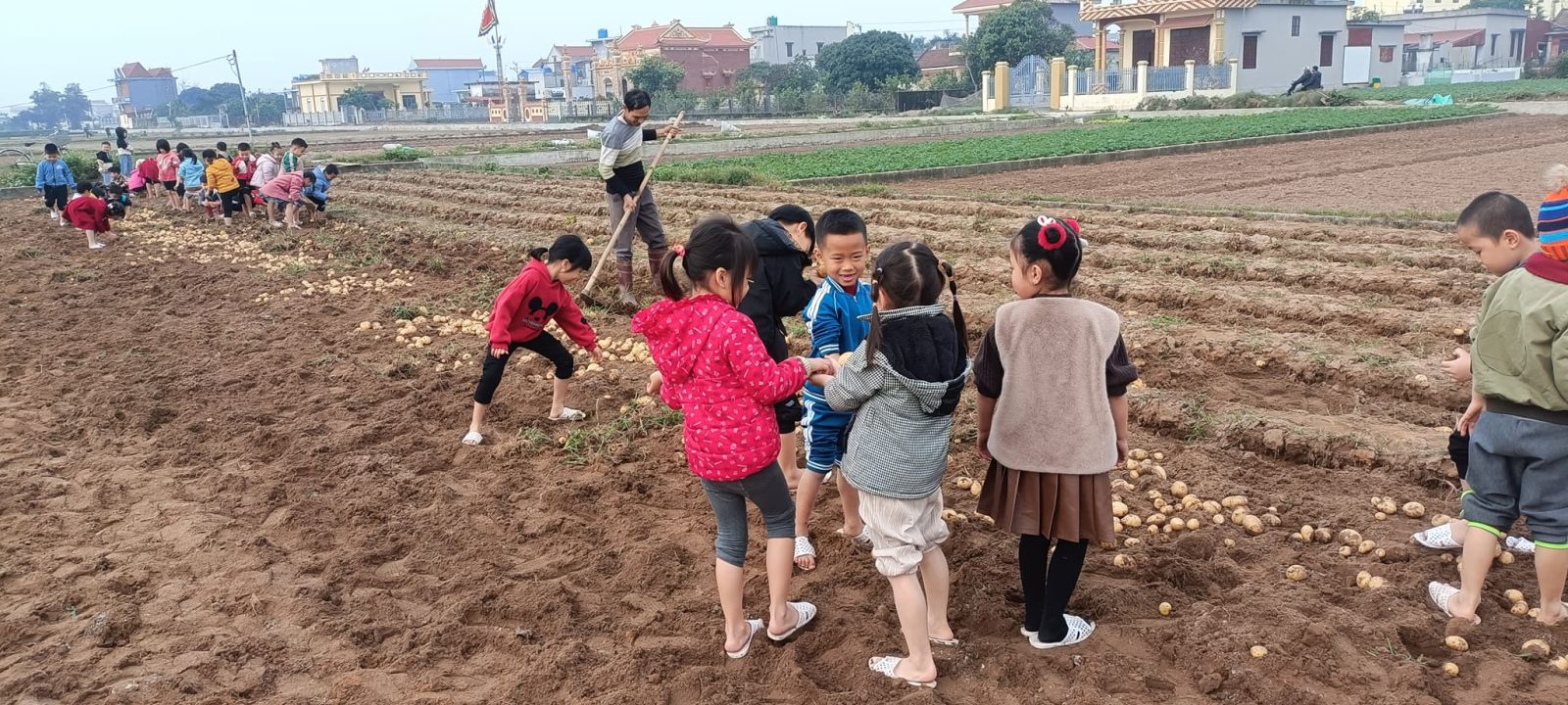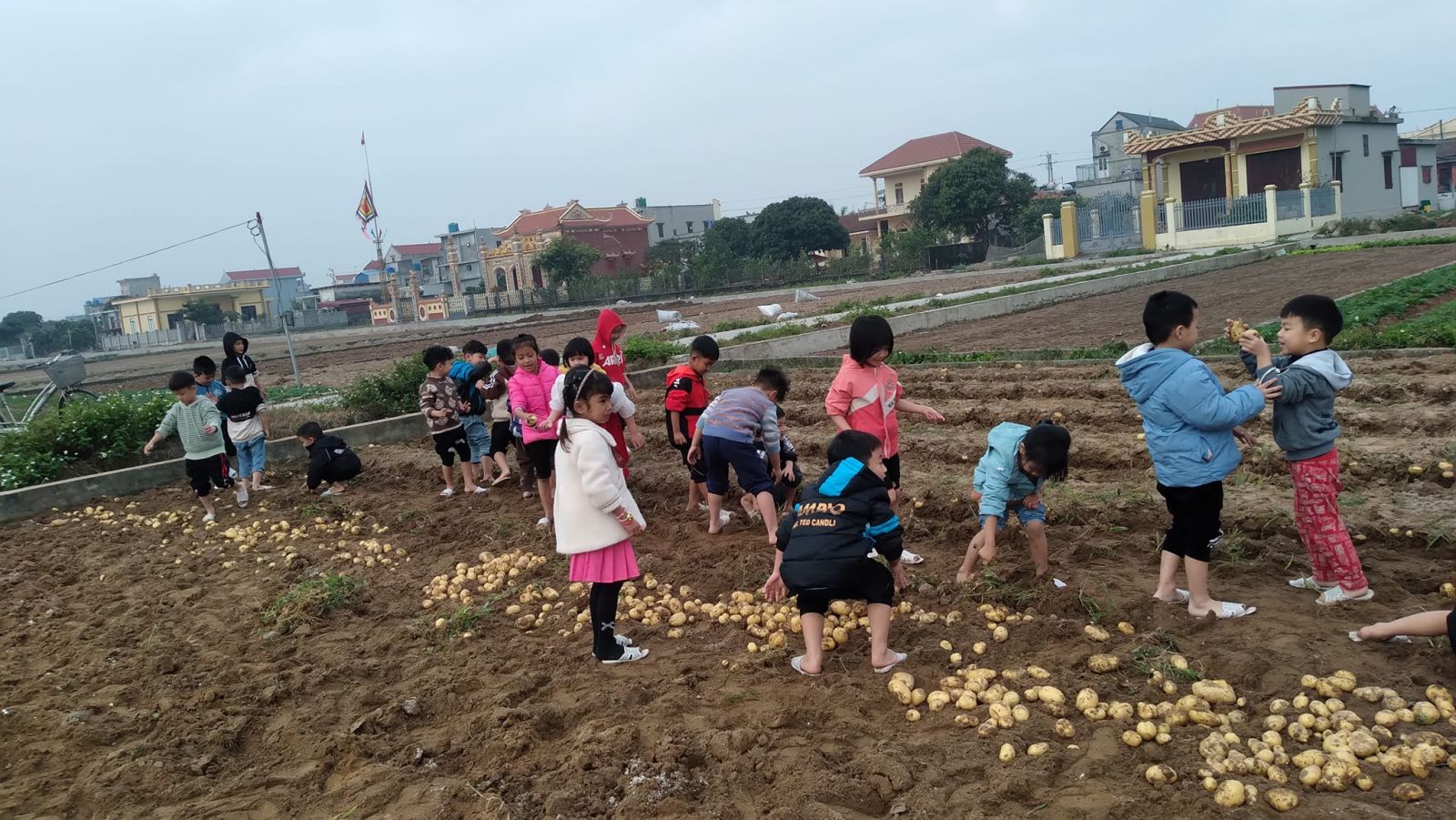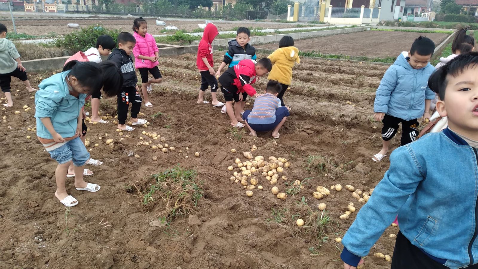 Dưới đây là một số hình ảnh trải nghiệm thu hoạch khoai tây giúp các bác nông dân của các con trường mầm non Giao Phong