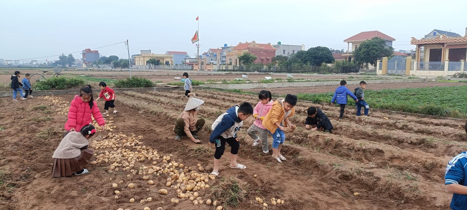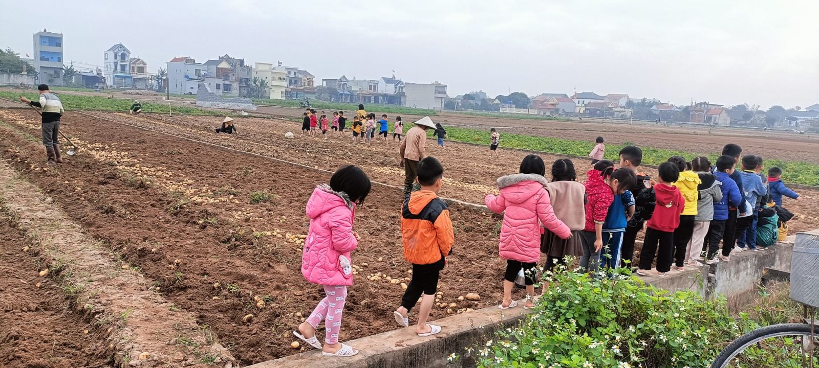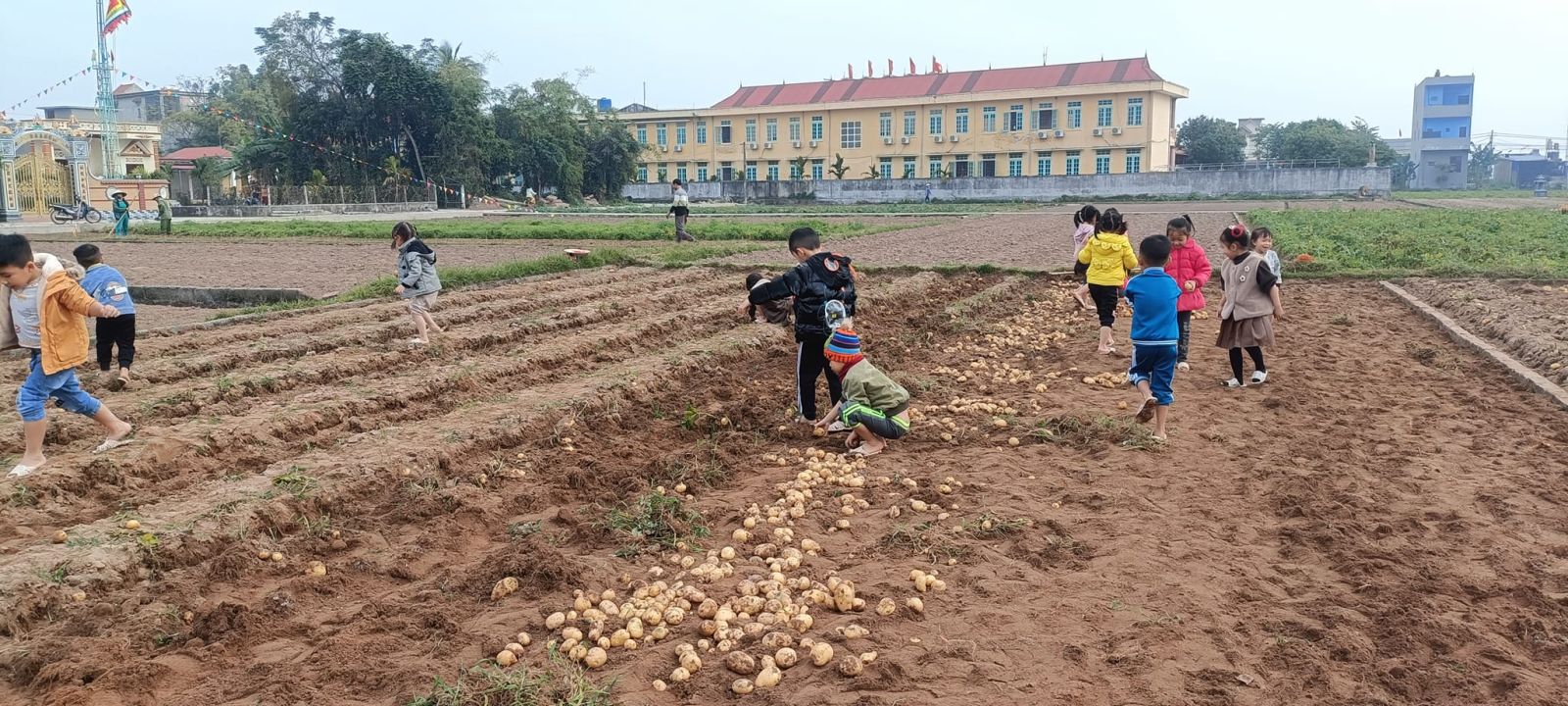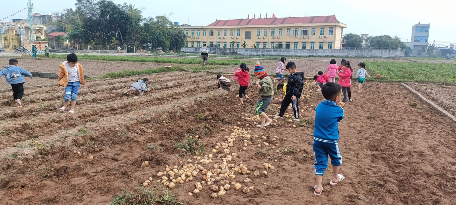 Dưới đây là một số hình ảnh trải nghiệm thu hoạch khoai tây giúp các bác nông dân của các con trường mầm non Giao Phong
