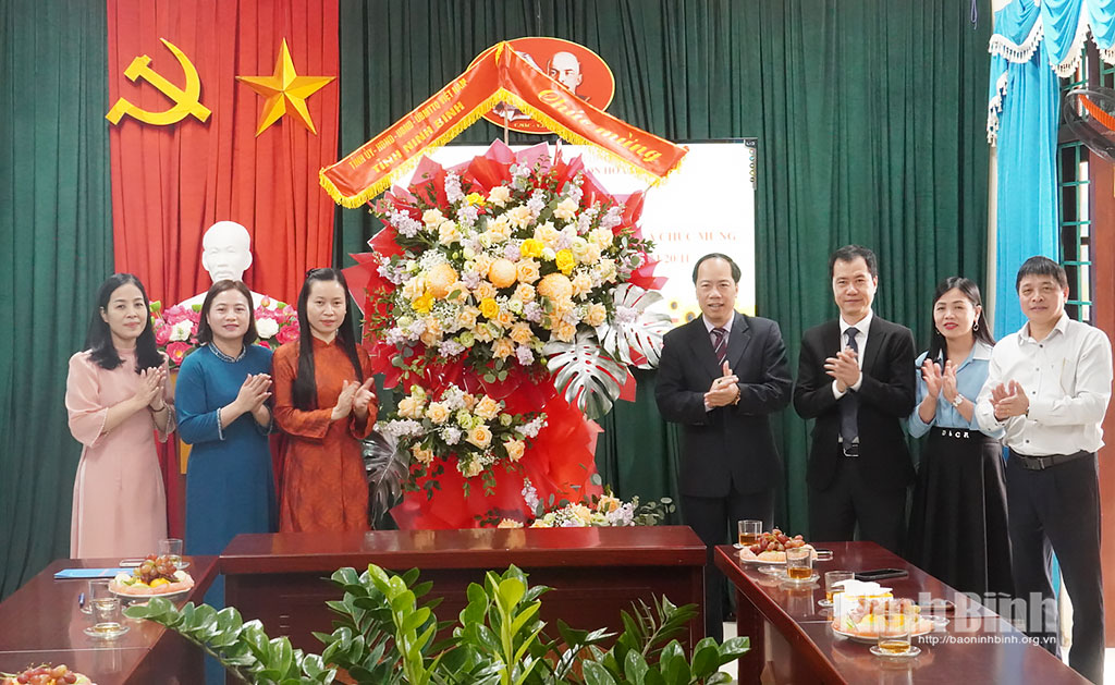 * Sáng 17/11, thừa ủy quyền của lãnh đạo Tỉnh ủy, HĐND, UBND, Ủy ban MTTQ Việt Nam tỉnh, đoàn đại biểu của Sở Giáo dục và Đào tạo do đồng chí Đinh Quốc Trường, Phó Giám đốc Sở làm trưởng đoàn đã đến thăm, chúc mừng cán bộ, giáo viên, nhân viên Trường Mầm non Hoa Mai (phường Hoa Lư). Cùng đi có đại diện một số phòng của Sở Giáo dục và Đào tạo; đại diện UBND phường Hoa Lư.