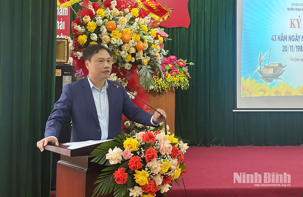 Phát biểu tại buổi gặp mặt, đồng chí Phó Chủ tịch HĐND tỉnh, Bùi Hoàng Hà ghi nhận, đánh giá cao những kết quả toàn diện mà ngành giáo dục xã Giao Ninh đã đạt được, đồng thời chúc mừng, chia vui với các thế hệ thầy giáo, cô giáo và học sinh các nhà trường nhân dịp kỷ niệm 43 năm Ngày Nhà giáo Việt Nam 20/11.