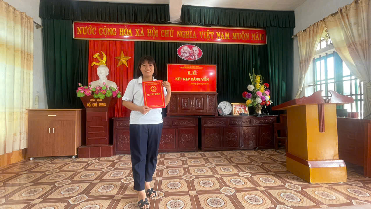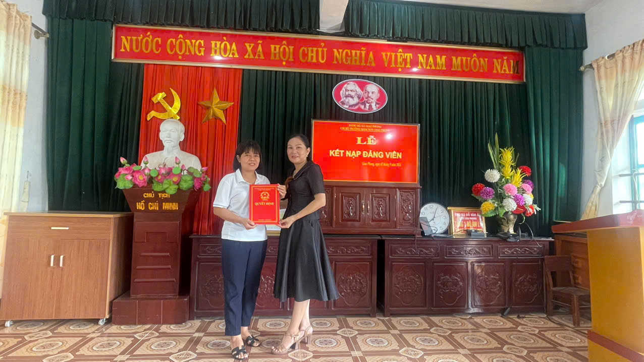 Tại buổi lễ, đồng chí Phạm Thị Thúy, Bí thư Chi bộ đã đọc và trao Quyết định kết nạp Đảng cho Đảng viên mới, phân công Đảng viên trong Chi bộ tiếp tục giúp đỡ đồng chí Đảng viên mới hoàn thành nhiệm vụ và phấn đấu trở thành các Đảng viên chính thức.